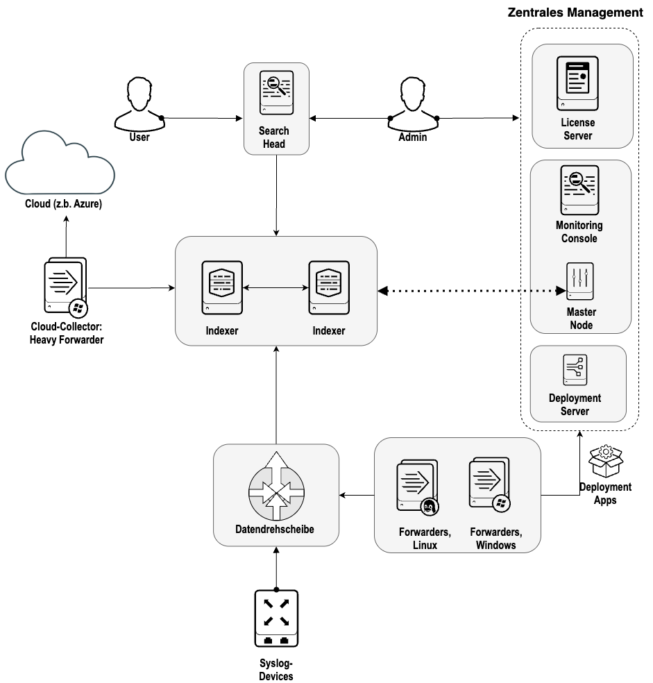 Ende 2023 stimmten wir uns mit dem CISO unseres Kunden dazu ab, Splunk und Splunk Enterprise Security als SIEM im Unternehmen zu implementieren. Die Integration sollte in die bestehenden Systeme des Kunden erfolgen, die vorwiegend On-Premise betrieben werden.
