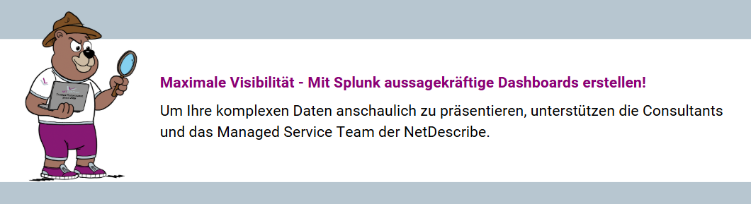 Und an dieser Stelle kommt die NetDescribe GmbH ins Spiel. Wir unterstützen die Fachabteilungen im Rahmen von Consulting und technischen Workshops, mit dem Ziel, immer bessere Analysen, Dashboards und Reports zu generieren und damit unserem Kunden den bestmöglichen Nutzen aus seinen Software Produkten in Kombination mit seinen Daten und Prozessen zu garantieren.
