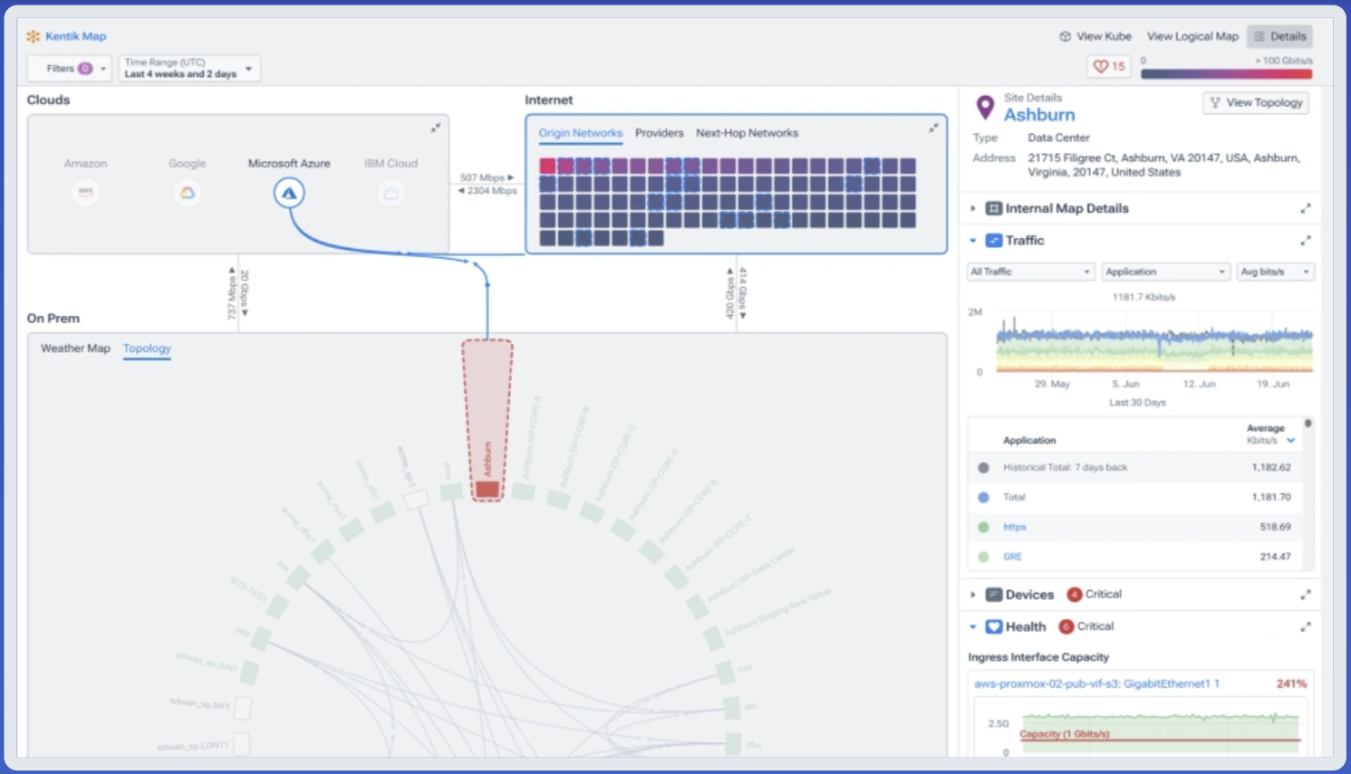 Interconnectivity-, Status- & Traffic-Map Azure and Ashburne Site View*