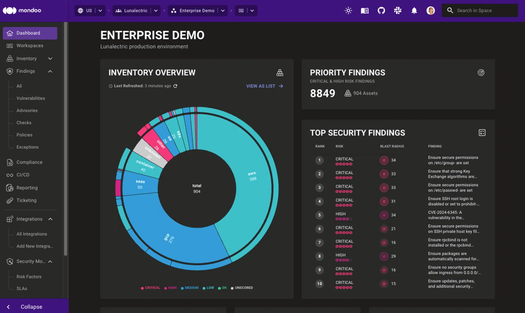 Mondoo identifiziert, priorisiert und behebt Risiken in Ihrer gesamten IT-Infrastruktur und Ihrem gesamten Entwicklungslebenszyklus über eine einzige Schnittstelle – einschließlich On-Premise, Cloud, SaaS und Endpunkten. Mit über 300 sofort einsatzbereiten out-of-the-box Richtlinien ermöglicht Mondoo mühelose Sicherheit und die Einhaltung gesetzlicher Rahmenbedingungen und CIS-Benchmarks.